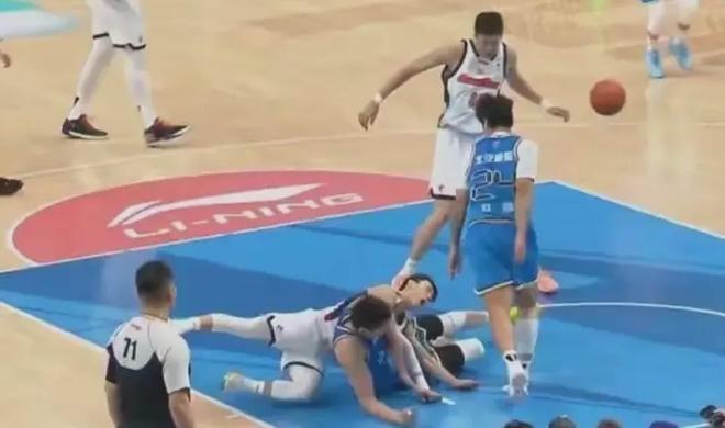 那是比賽第二節的一個回合,當時薩姆納跟周琦出現了一次對抗,周琦失了重心,摔倒碰到徐傑。