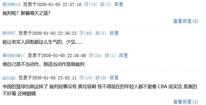 還有球迷直接怒斥裁判和CBA,並且表示要投訴籃協替邱彪出頭。