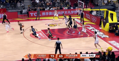 這記三分對於廣東隊來說非常關鍵,對於陳家政來說同樣也是意義重大,在打進關鍵三分後陳家政非常興奮,大肆慶祝;