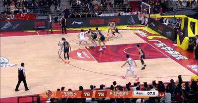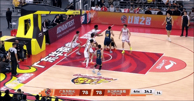 末節最後31秒,胡明軒還在一次亂戰中獲得了超級弧頂大空位的三分機會,但接下來他在無人看管的情況下,出手將球砸到了籃筐前沿,這一回合對廣東隊來說也是損失慘重,雖然後續奎因搶到了籃板被瓊斯推出界外,但被裁判張磊吹罰浙江球權。