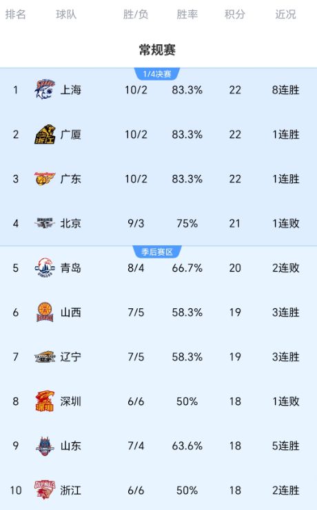 - 隨著山東壓哨絕殺北京,廣廈大勝,遼寧3連勝,CBA最新積分榜如下