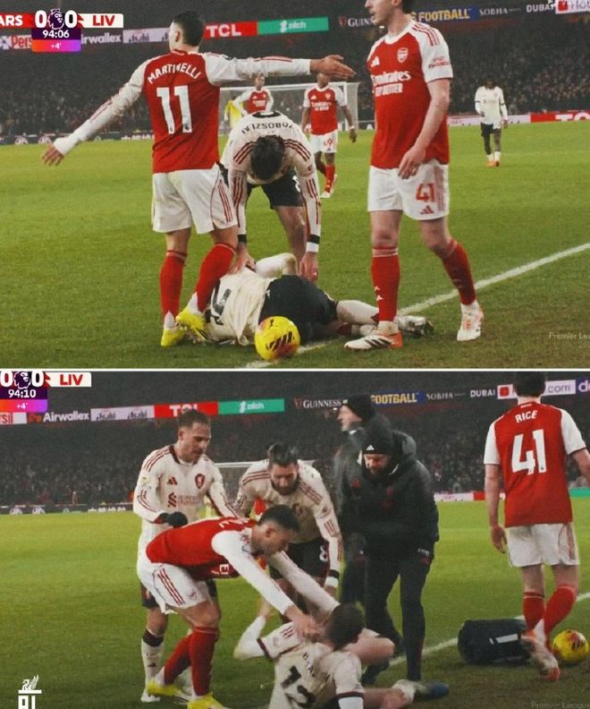 而比賽尾聲階段出現了不和諧一幕,身價4500萬歐元的阿森納前鋒馬丁內利,推搡重傷倒地的利物浦後衛布拉德利,引發雙方衝突。