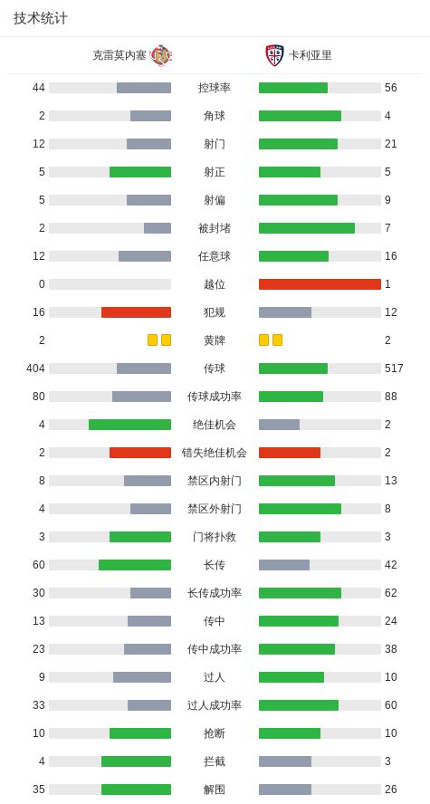 克雷莫內塞2-2卡利亞裏,丹尼斯-約翰森打破僵局,特雷皮扳平-24直播網