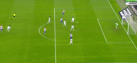 第35分鍾,馬競錯失絕佳機會,加拉格爾傳中,索爾洛特後點麵對近乎空門的頭球竟然打高。4分鍾後,皇馬中場被斷,馬競連續三腳射門被庫爾圖瓦和呂迪格合力化解,門前一度風聲鶴唳。
