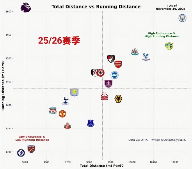 從統計數據可以看到,曼城是英超球隊裏人均跑動距離和衝刺跑距離最長的球隊。瓜迪奧拉很重視跑動,塞梅尼奧最吸引他的地方,應該就是他在比賽中的覆蓋麵積和衝擊跑頻率。