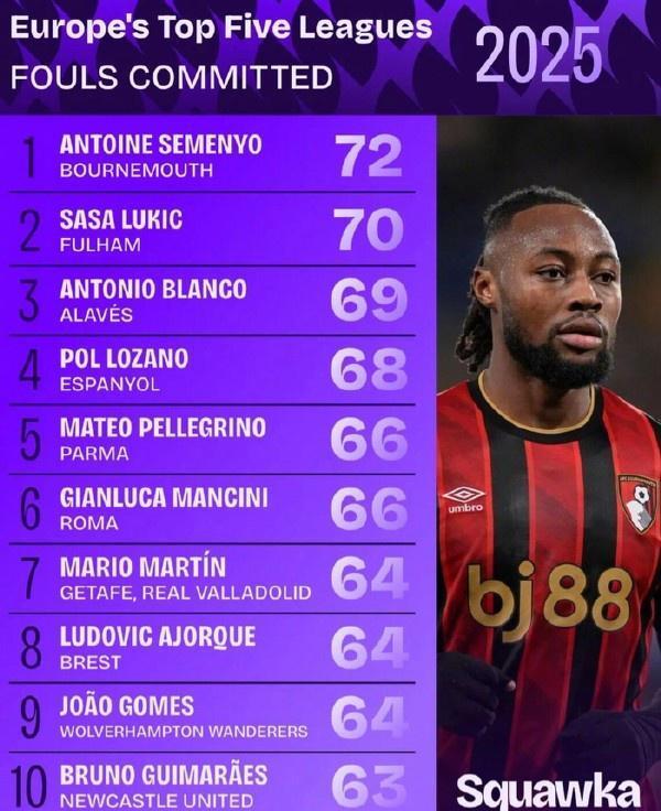 畢竟塞梅尼奧是歐洲五大聯賽犯規最多的球員,之前伯恩茅斯與切爾西的比賽中,也是塞梅尼奧積極回防時對埃斯特旺犯規送出了點球。