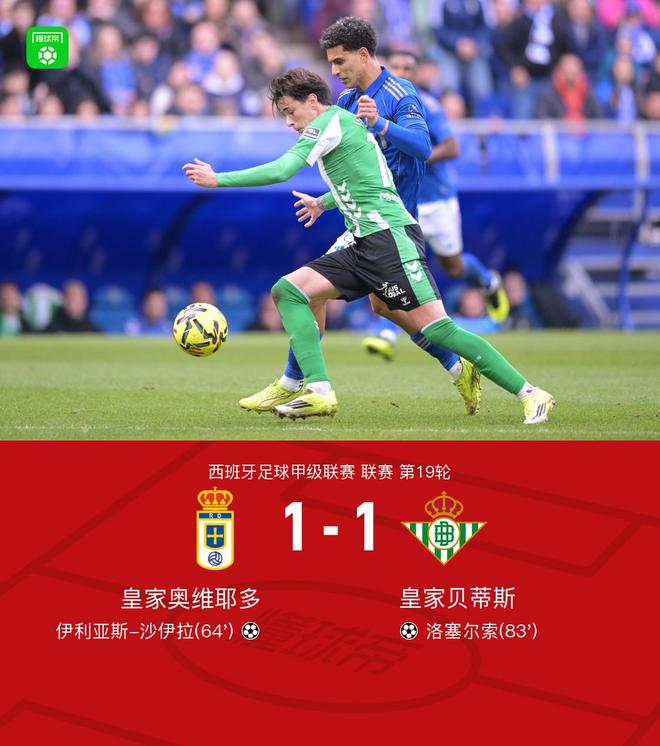 奧維耶多1-1貝蒂斯,沙伊拉貼地斬,安東尼助攻洛塞爾索扳平-24直播網