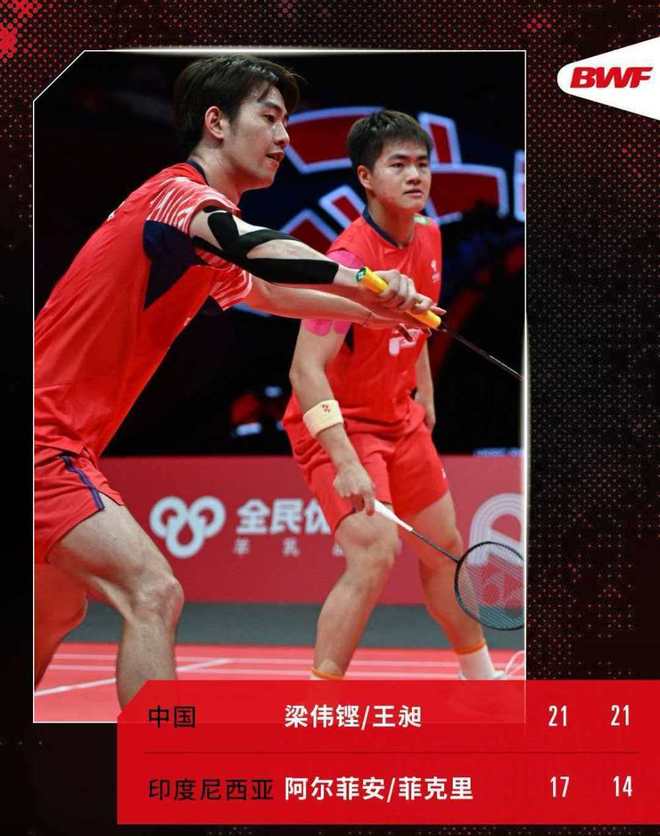 國羽男雙“獨苗”梁偉鏗/王昶以21比17、21比14擊敗印度尼西亞強手阿爾菲安/菲克裏,小組賽首場失利後連勝兩場,搶得一個出線名額。賽後王昶說近兩個月沒參加國際比賽了,正在通過小組賽慢慢恢複狀態。