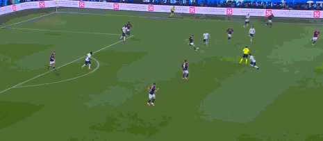 上半場,第2分鍾,國米就完成閃擊破門,巴斯托尼持球推進到大禁區角,觀察後送出傳中到後點,小圖拉姆跟進淩空側身抽射入網。