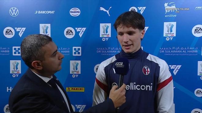 在意大利超級杯半決賽點球大戰淘汰國際米蘭成功晉級之後,博洛尼亞中場法比安接受了來自慢鏡頭的采訪。